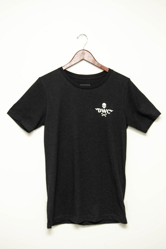 Basic brews not invited. Let them know how you feel about weak coffee in this icon—the DWC logo tee. We have one in every color, because on occasion, we spice up the usual all-black-everything with colorful touches of white and grey. Just add jeans, a hat and a cup of the World’s Strongest Coffee, and you’ll look timeless as hell. Details: Unisex fit. See size chart for full details. Updated skull and crossbones logo on chest. DWC insignia printed on the back. Tagless for comf